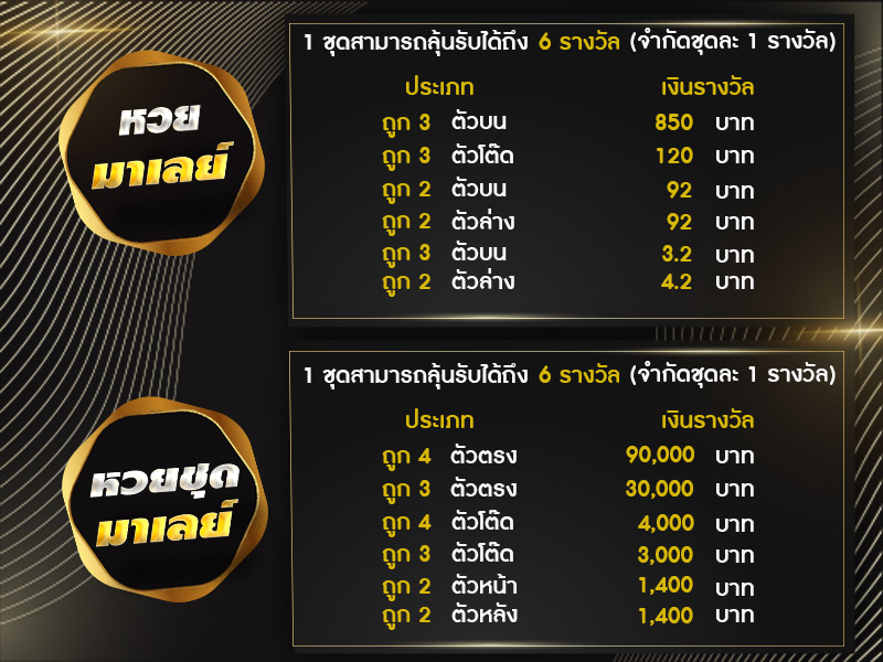 อัตราการจ่ายหวยมาเลย์ ลงทุนน้อย จ่ายสูง